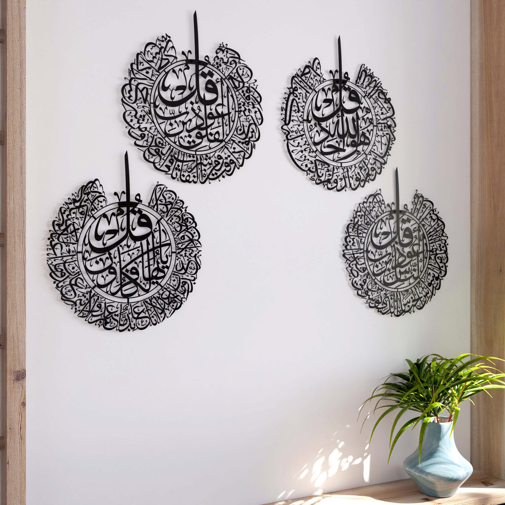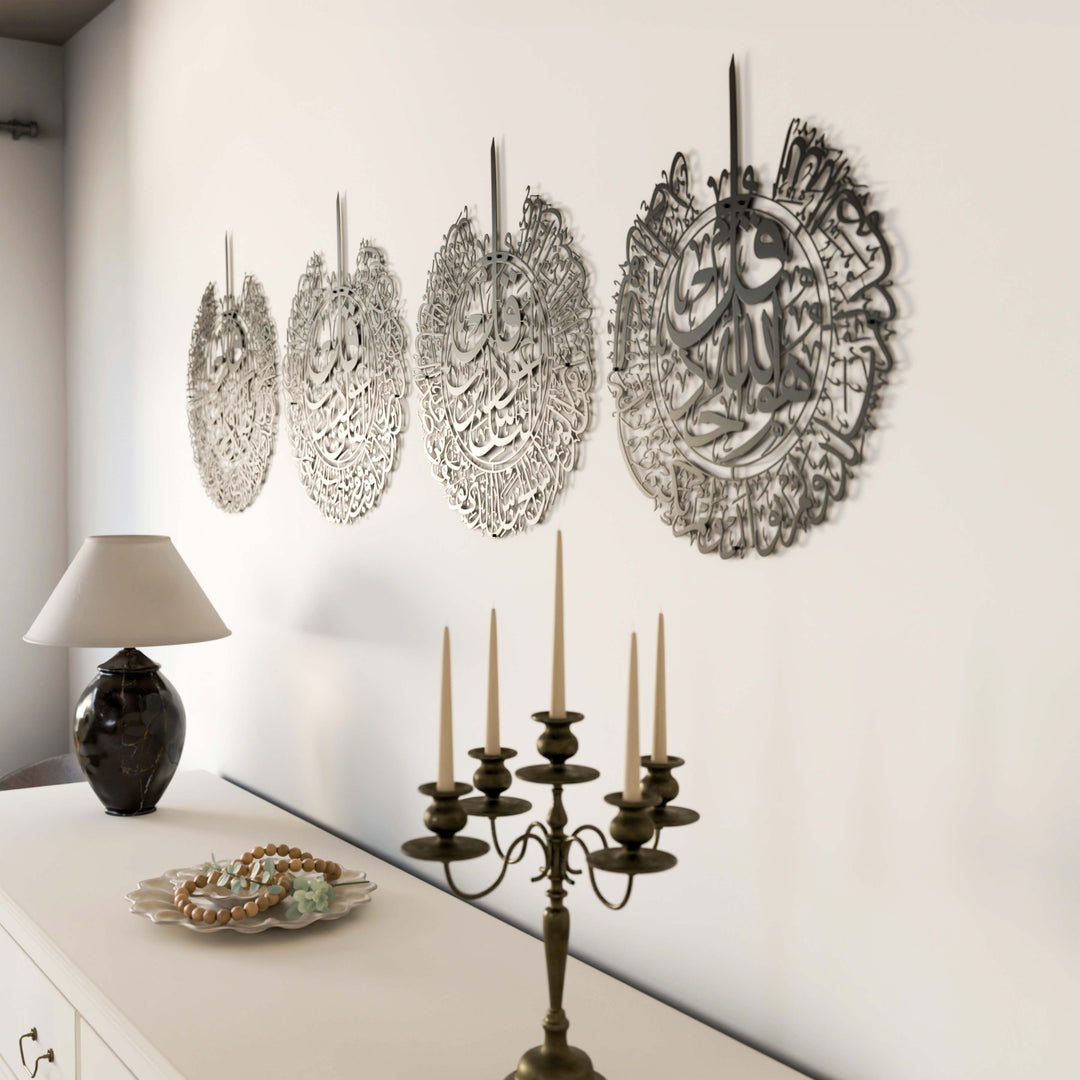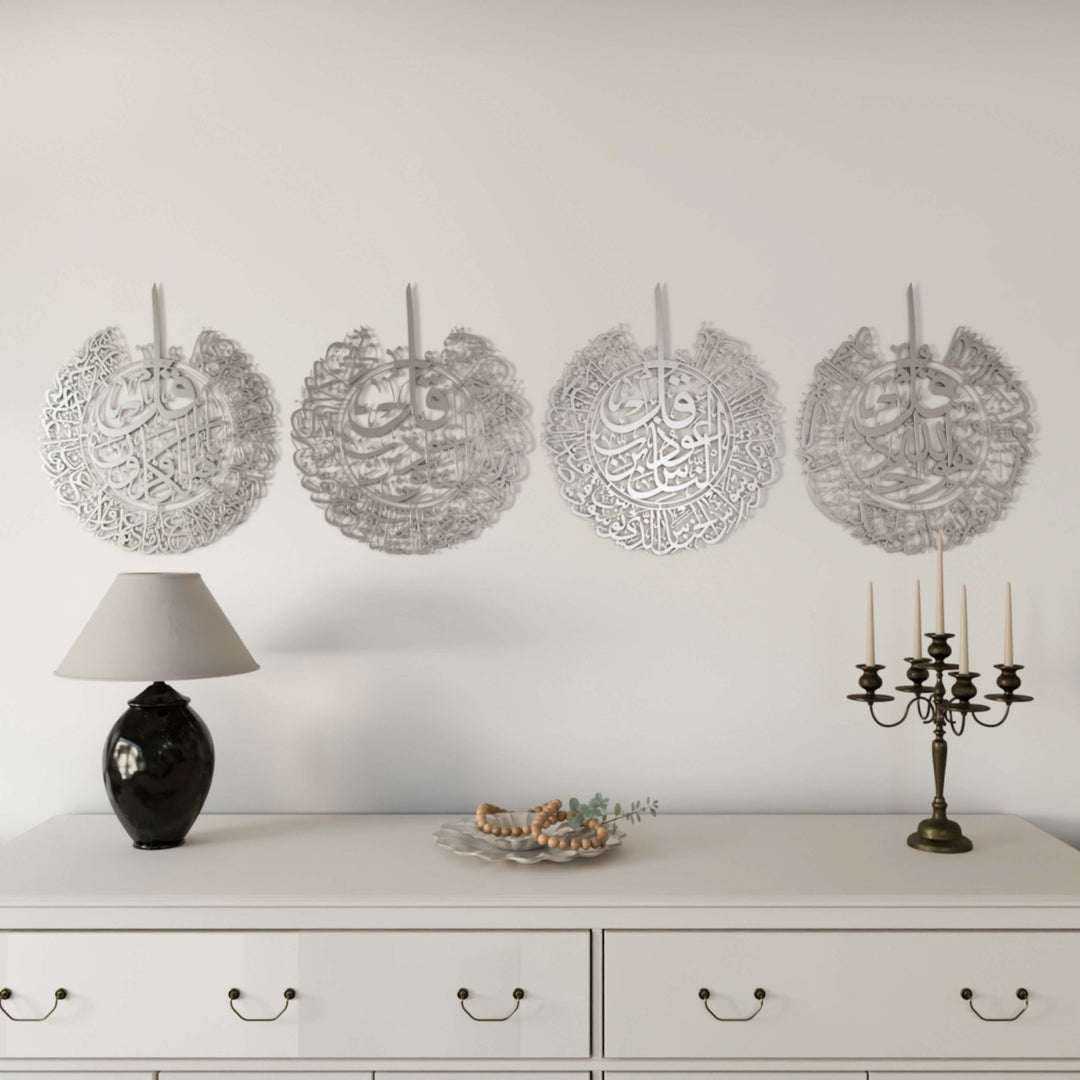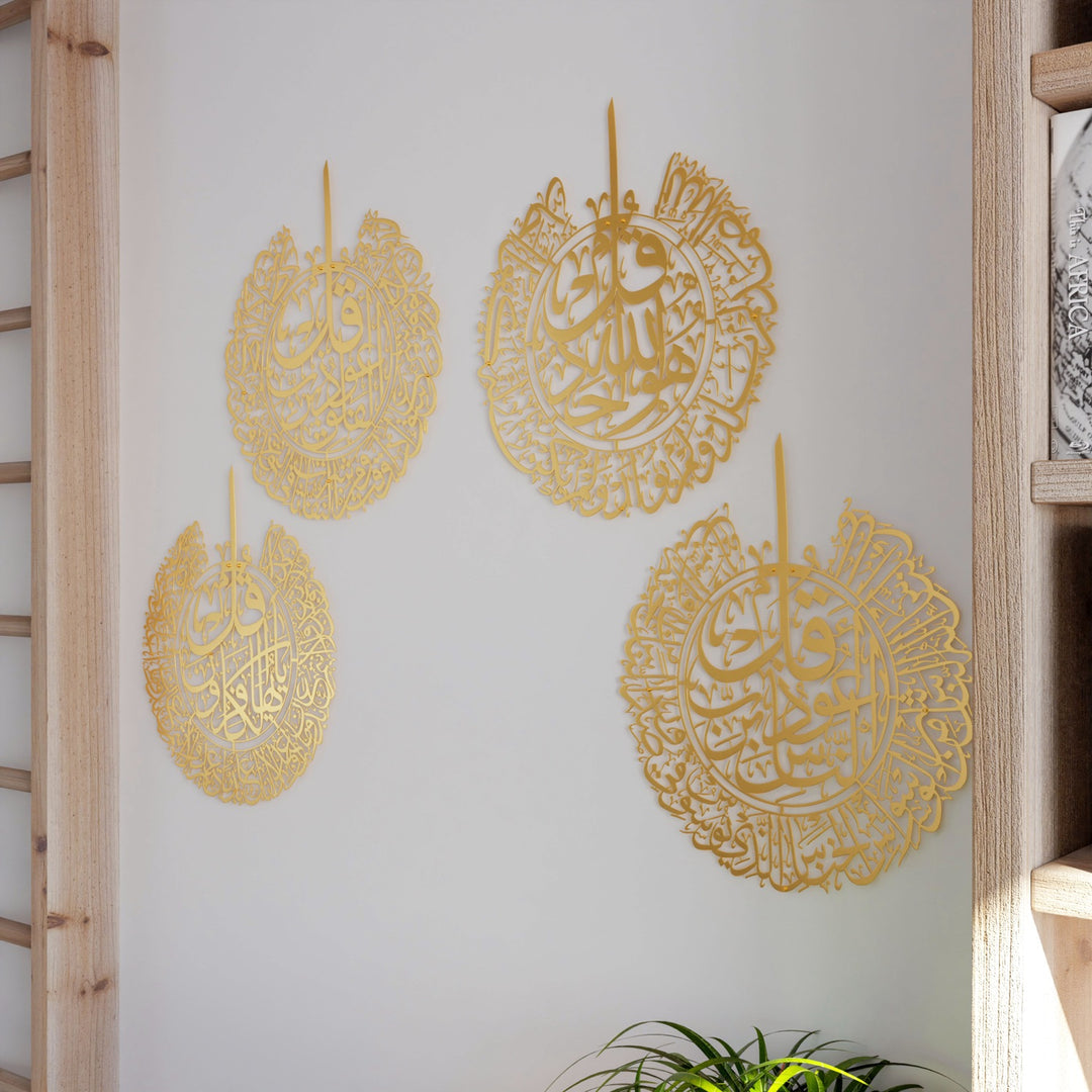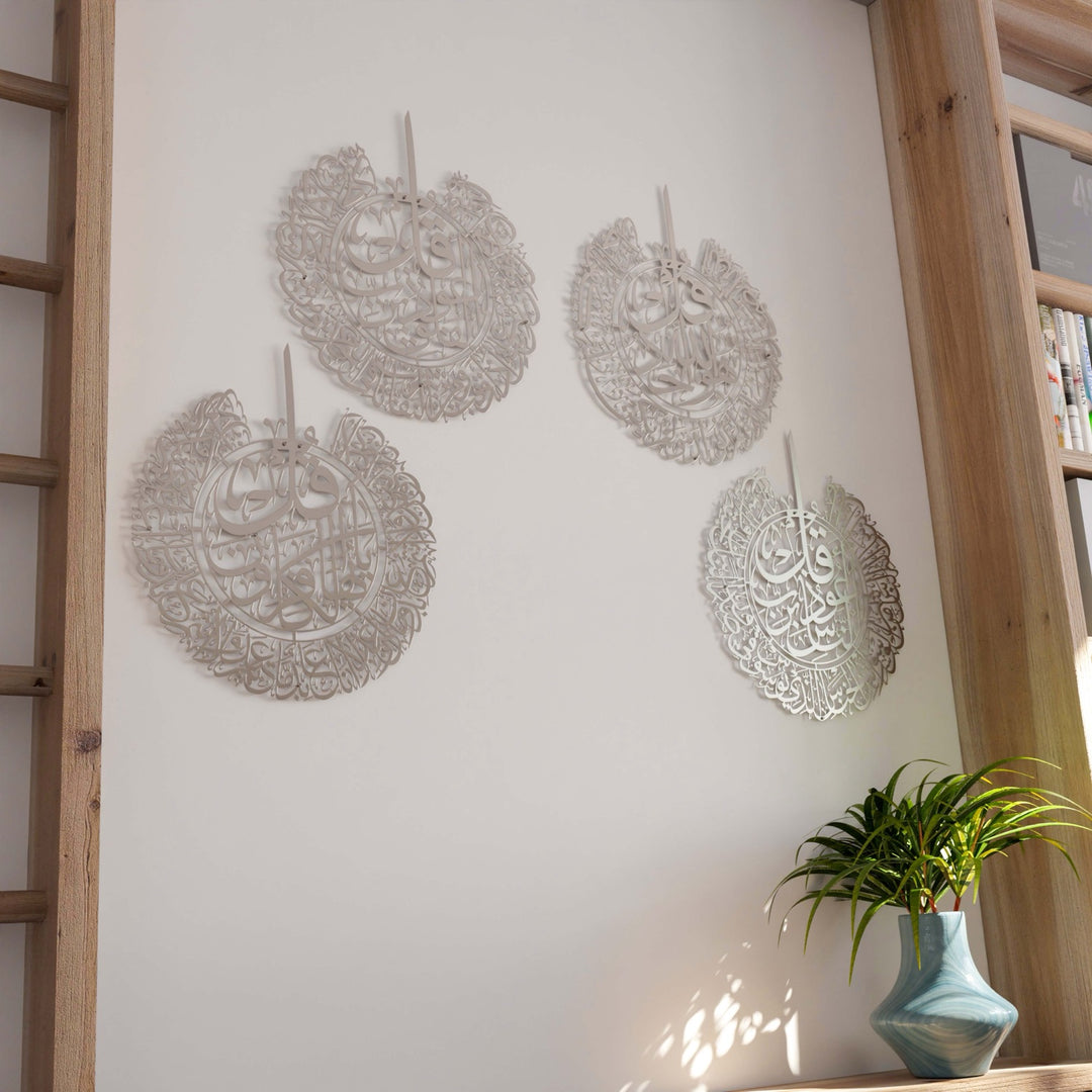 4 قلس أكريليك لوحة جدارية إسلامية مجموعة من 4 (سورة الكافرون والإخلاص والفلق والناس) أكريليك - سمك 6 مم