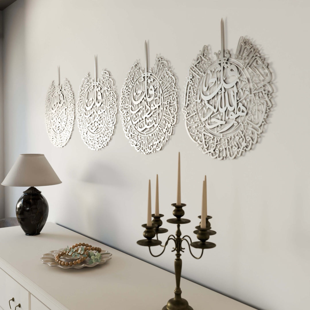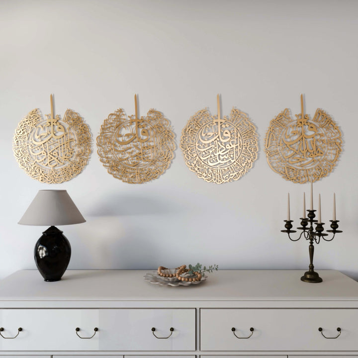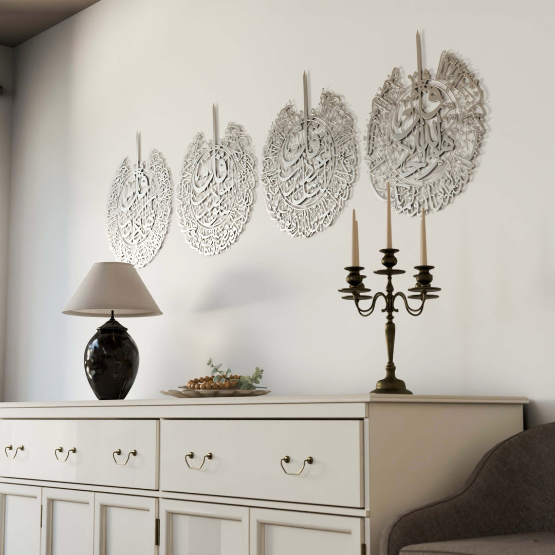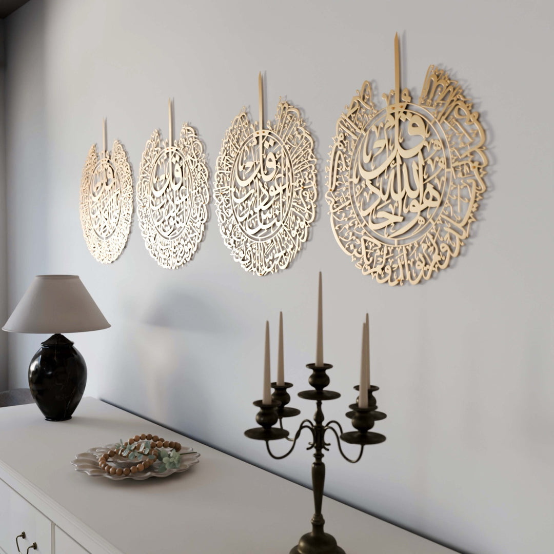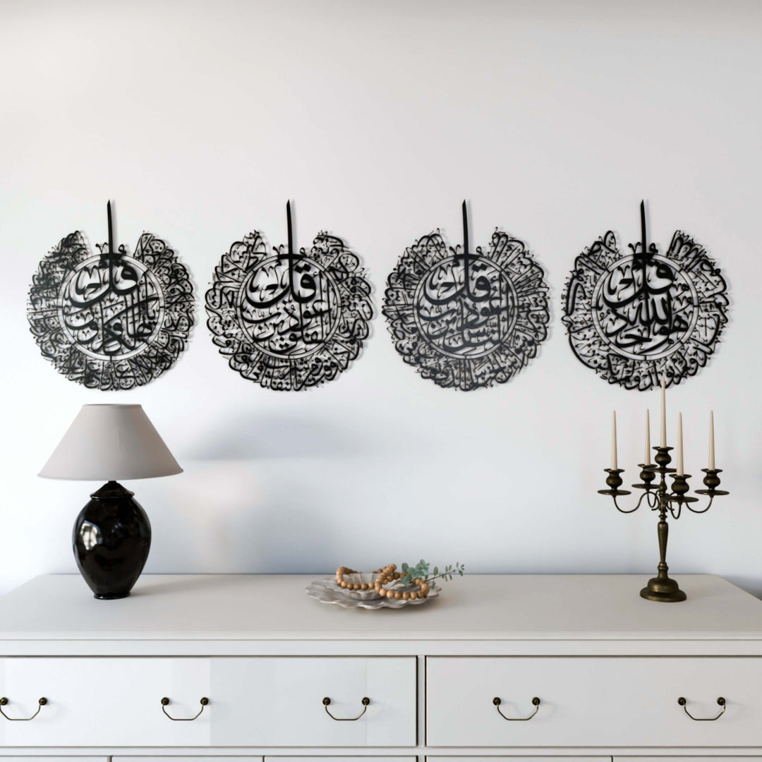 4 قلس أكريليك لوحة جدارية إسلامية مجموعة من 4 (سورة الكافرون والإخلاص والفلق والناس) أكريليك - سمك 6 مم