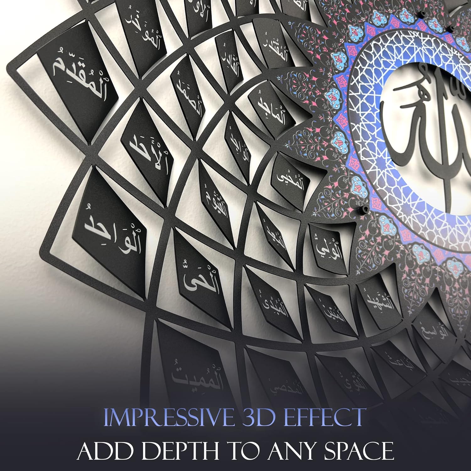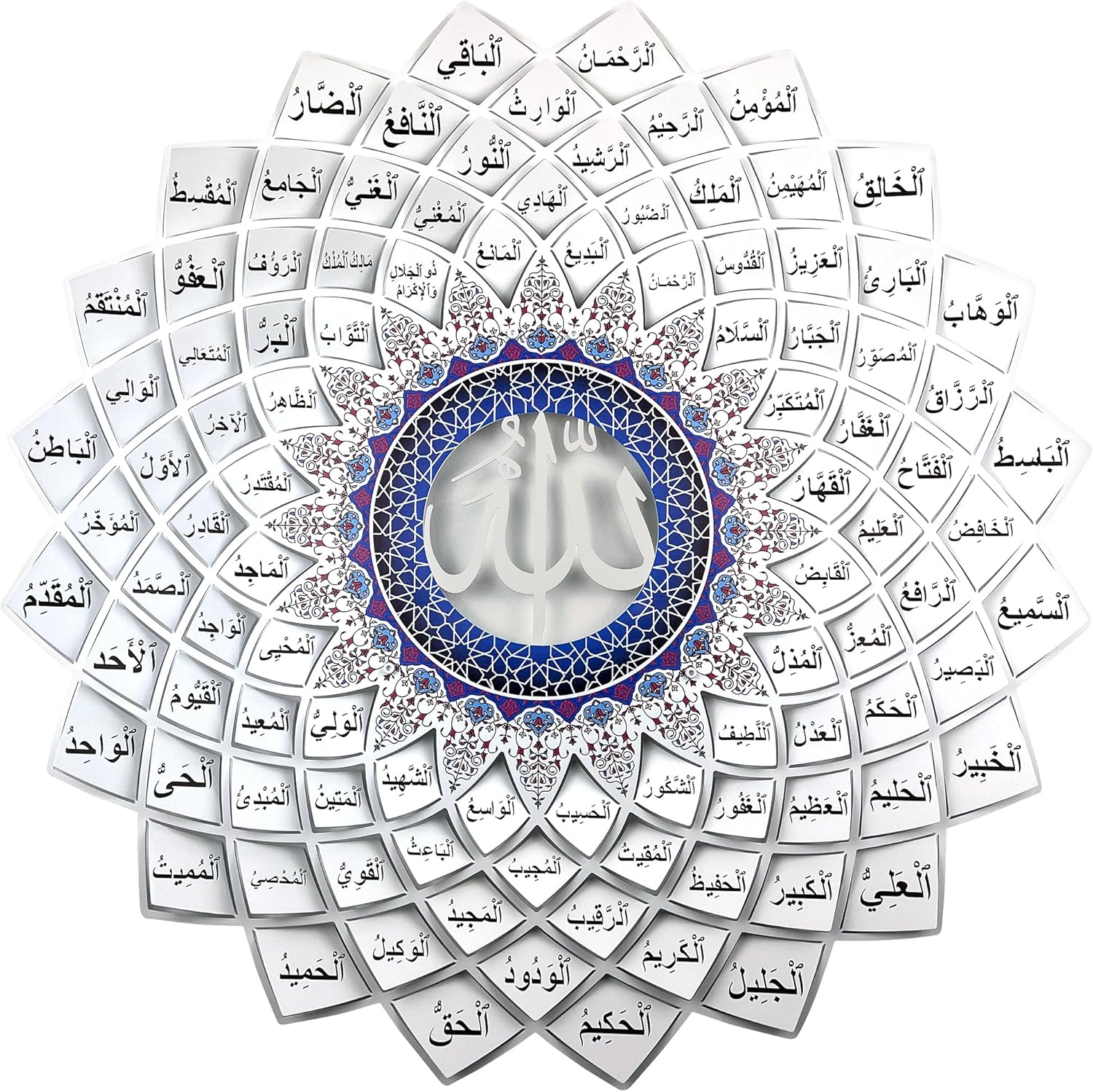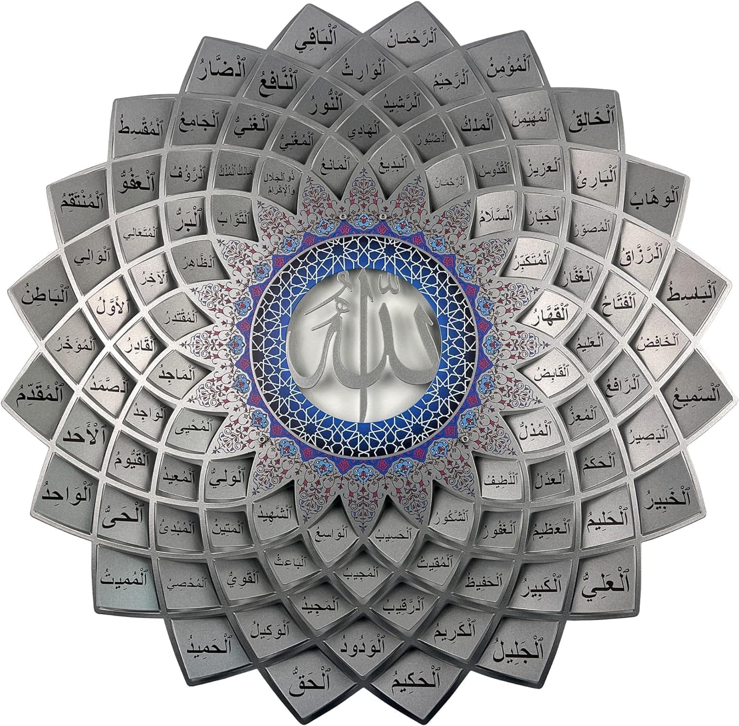 لوحة جدارية معدنية ثلاثية الأبعاد تحمل أسماء الله الحسنى الـ99 (أسماء الحسنى)