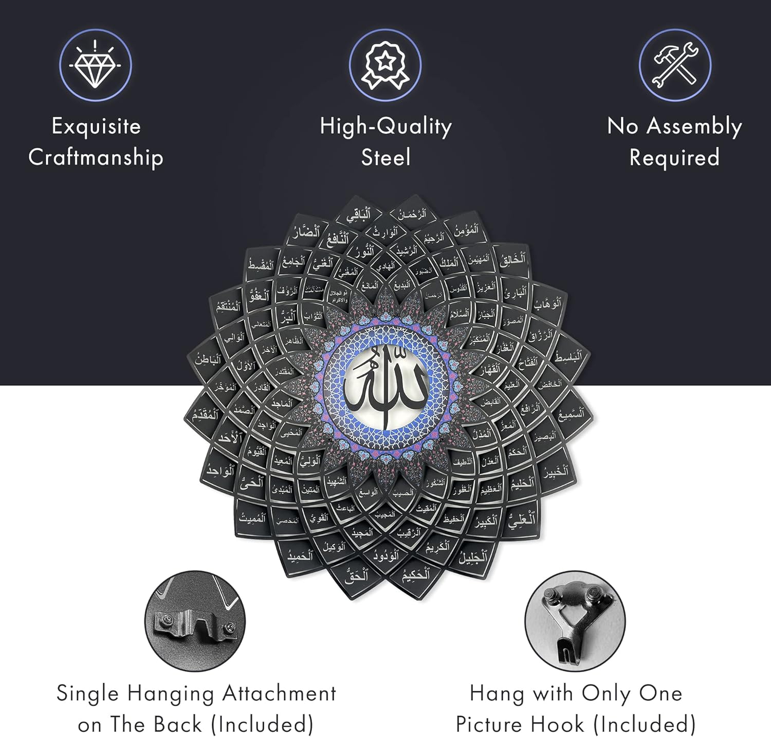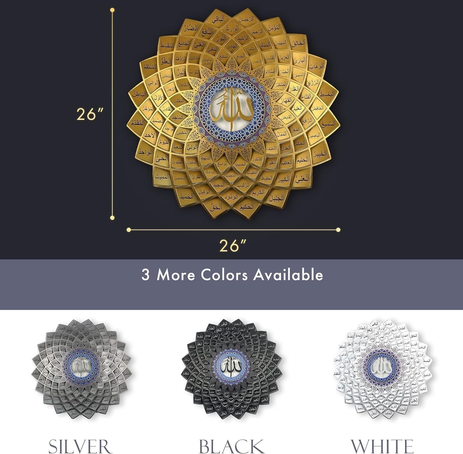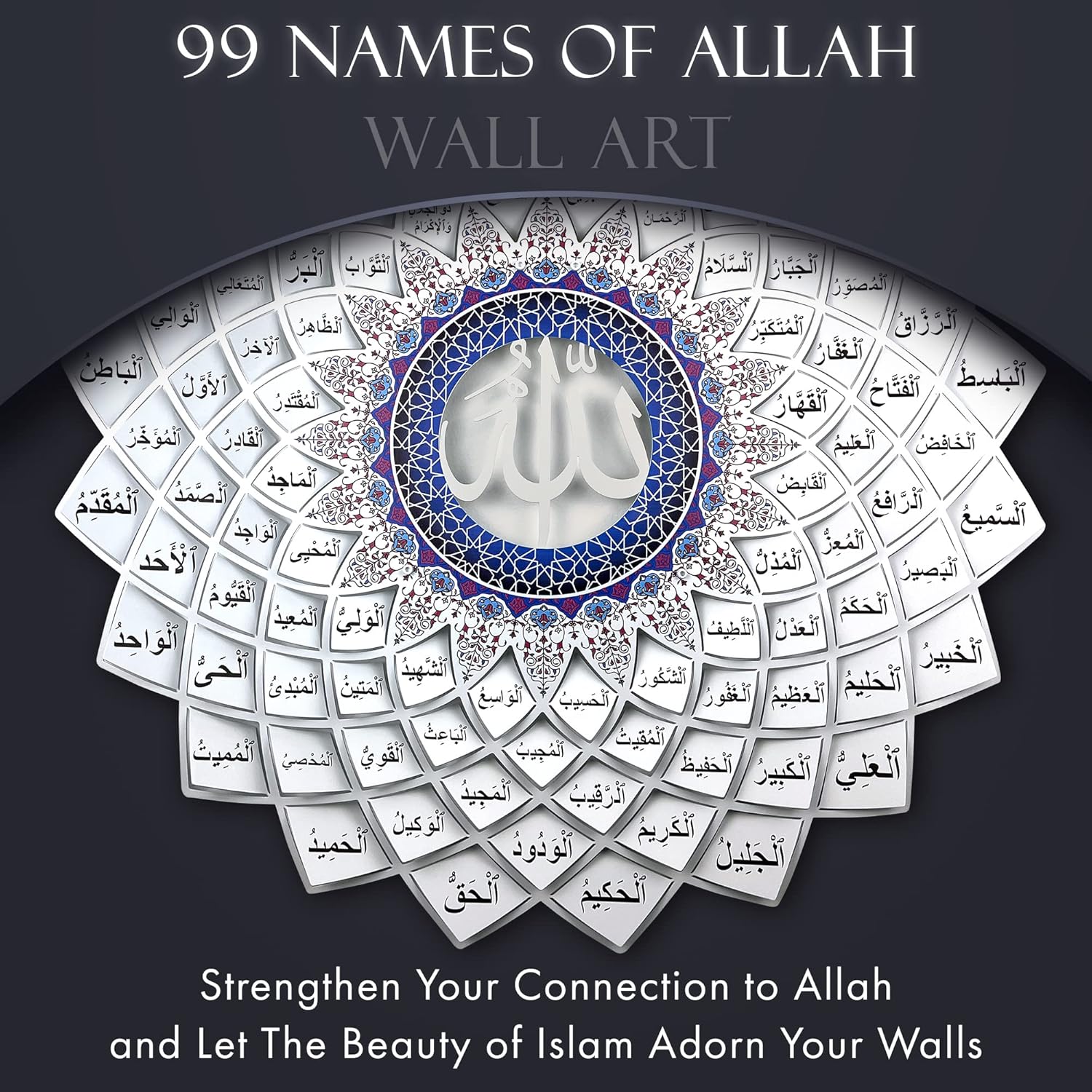 لوحة جدارية معدنية ثلاثية الأبعاد تحمل أسماء الله الحسنى الـ99 (أسماء الحسنى)