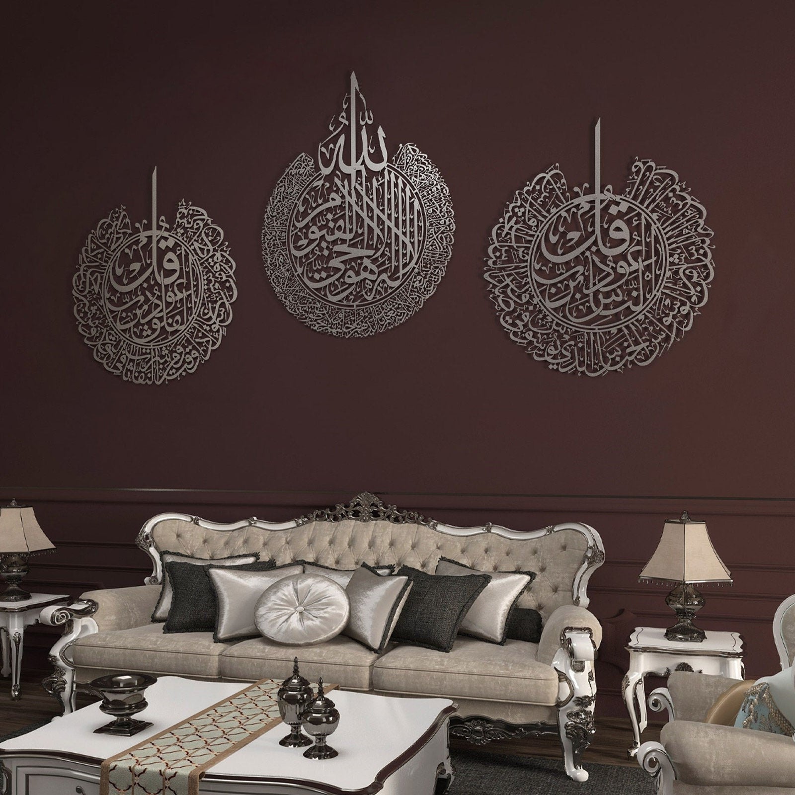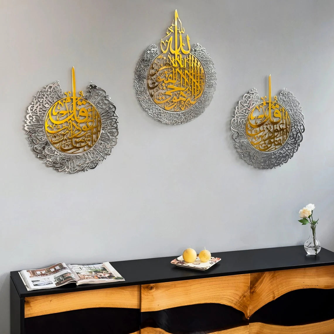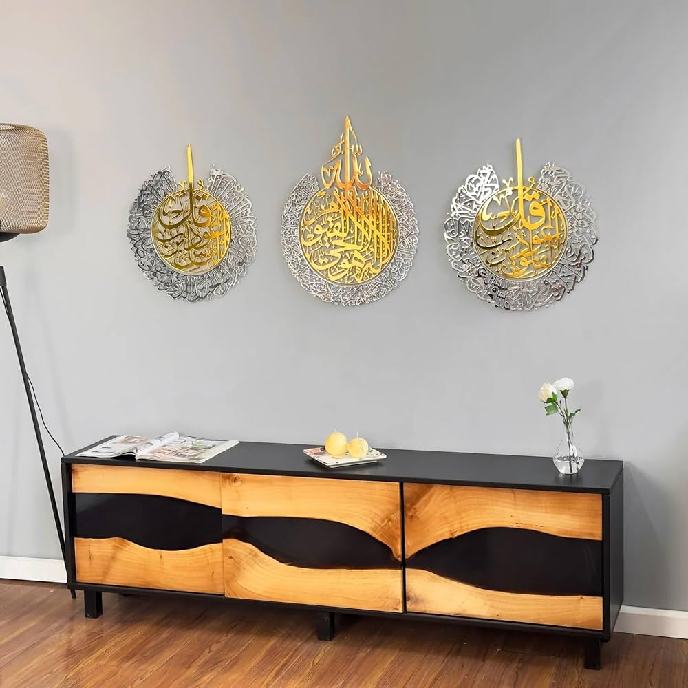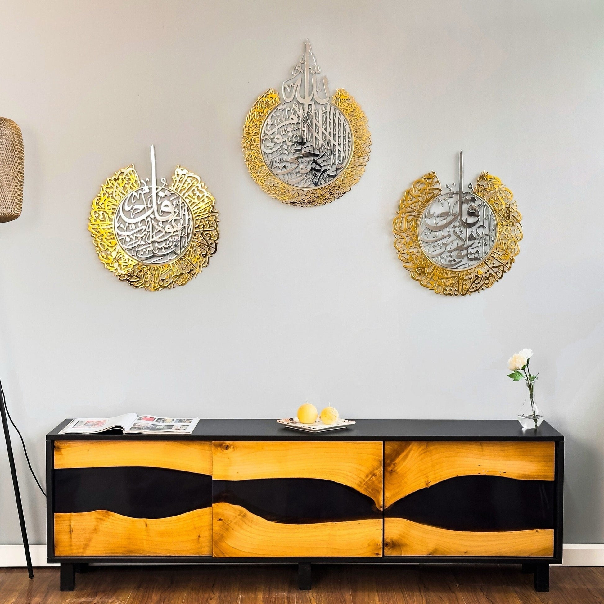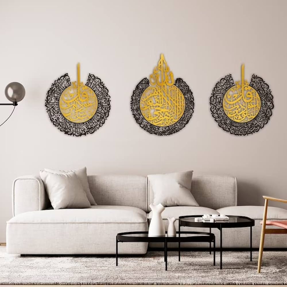 لوحة فنية جدارية إسلامية آية الكرسي وسورة الناس وسورة الفلق (مجموعة من 3)