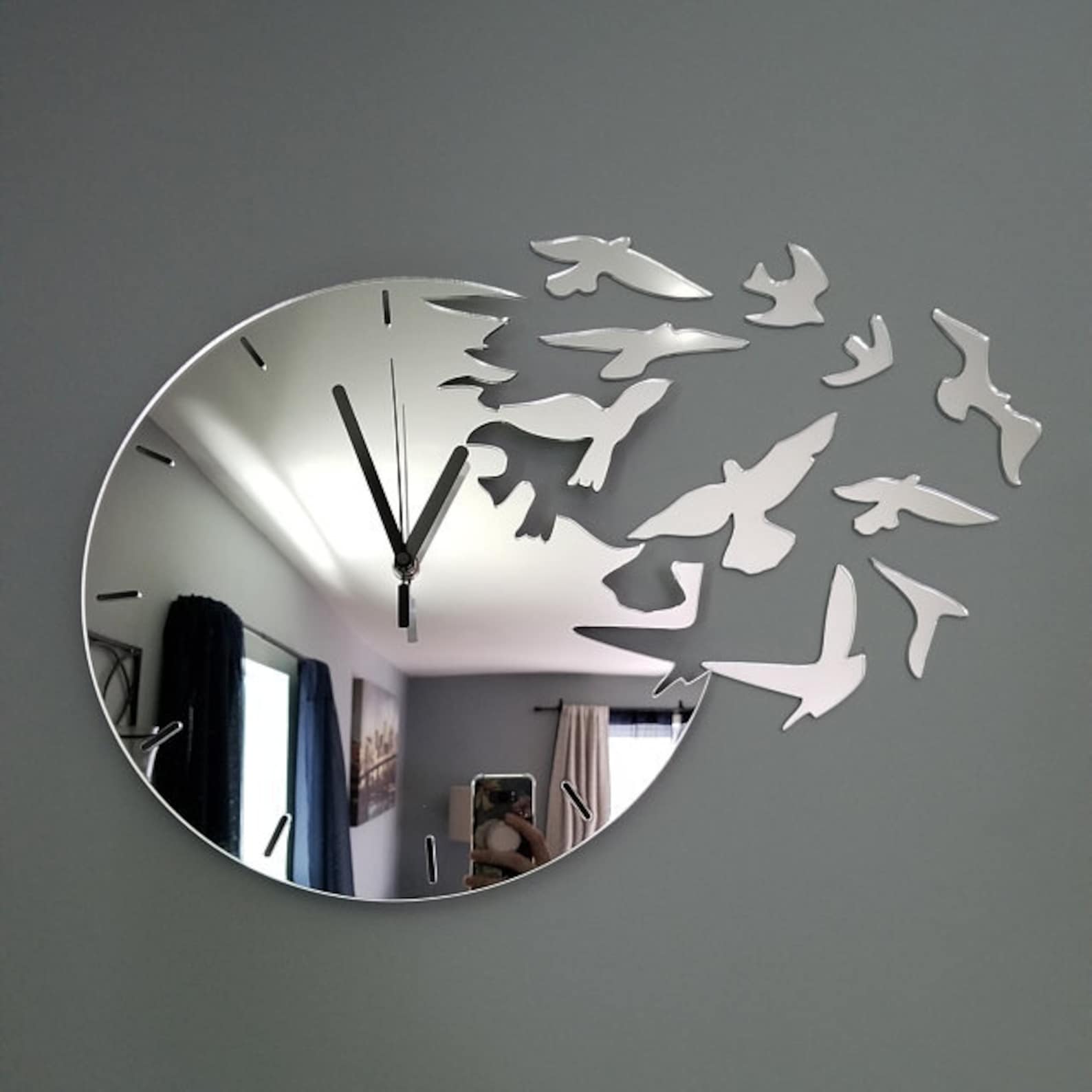 ساعة حائط مرآة طيور الجنة ساعة حديثة هدية ديكور حائط ديكور حائط ساعة حائط كبيرة هدية فنية منزلية