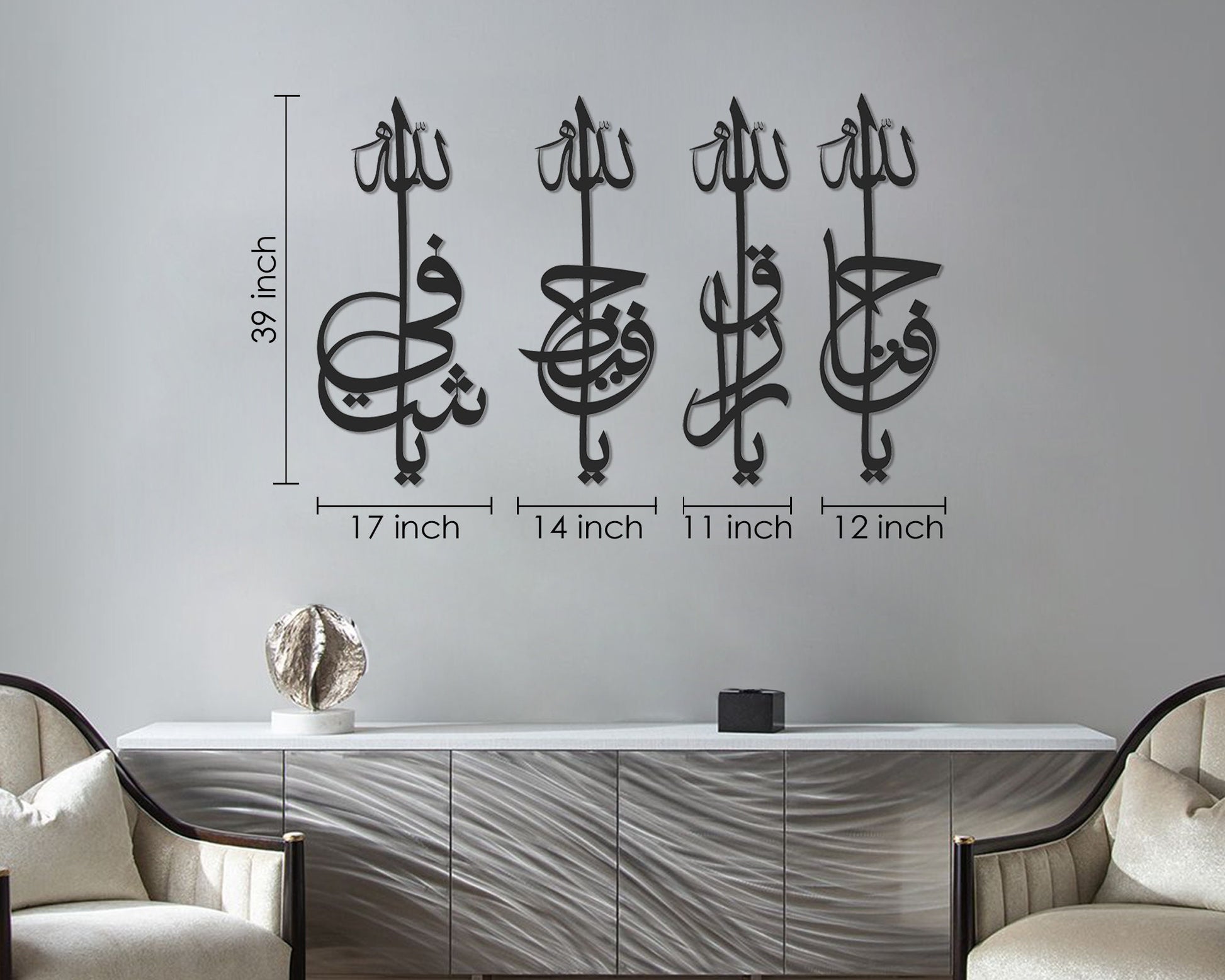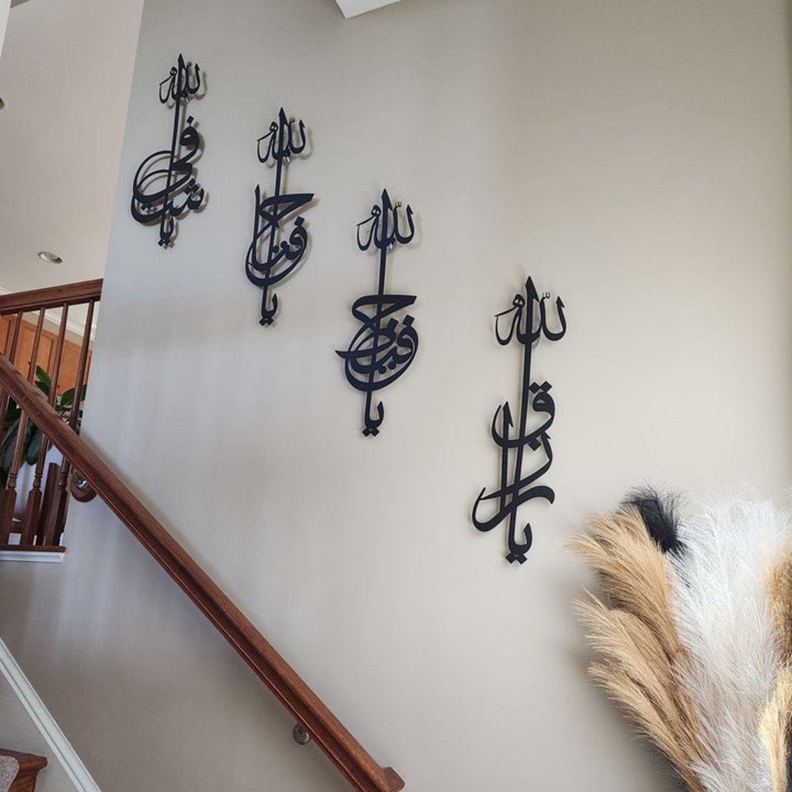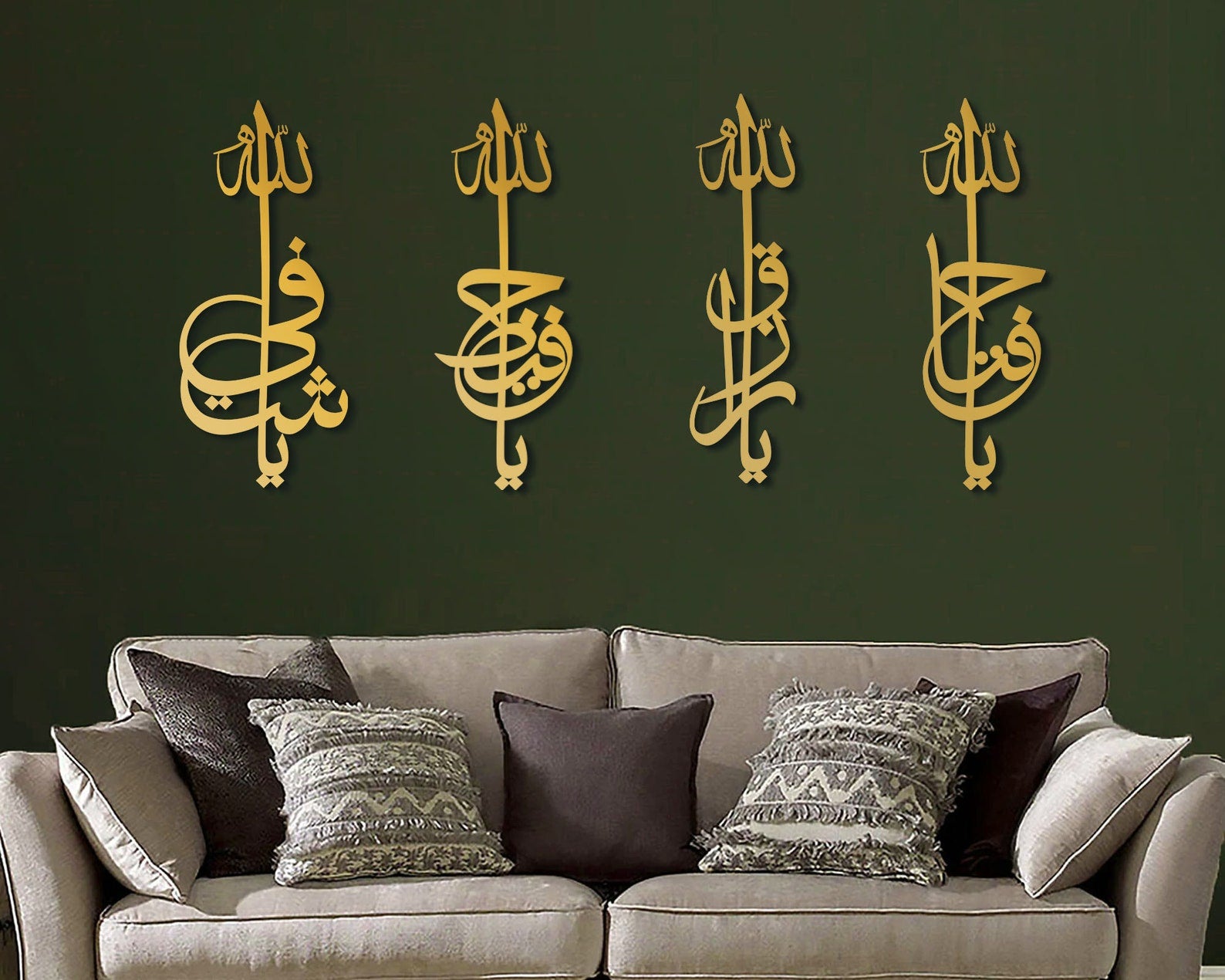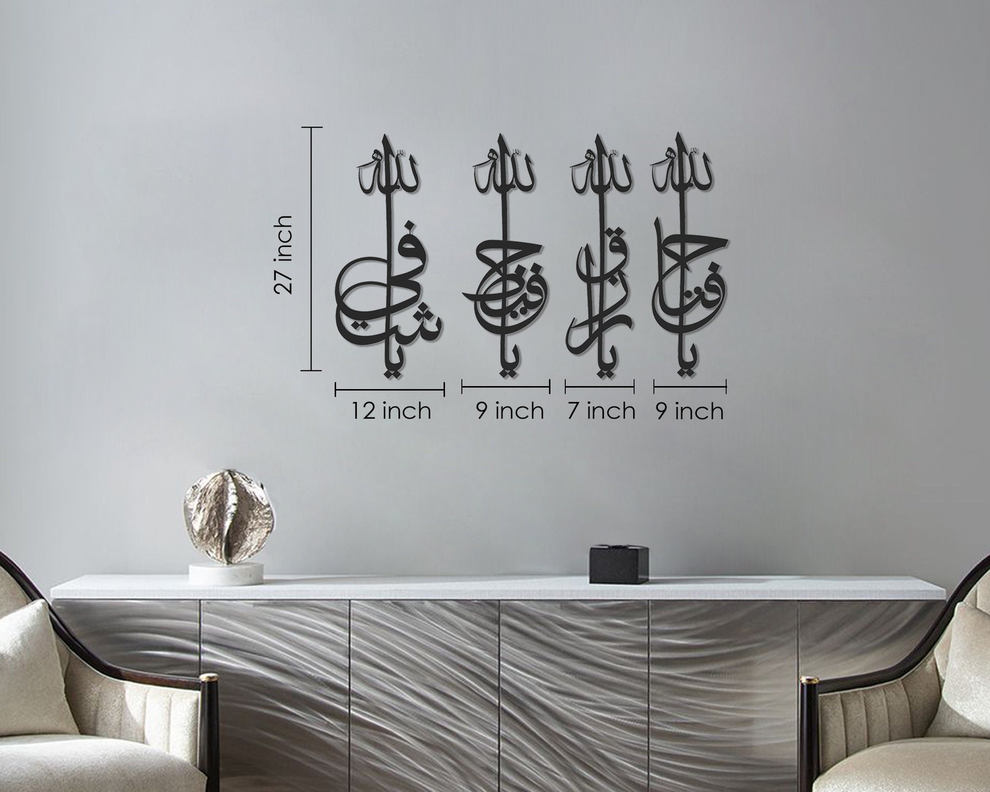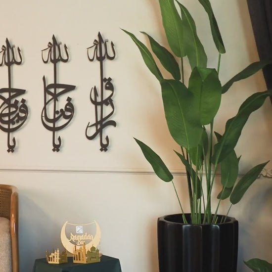 مجموعة من 3 - لوحات جدارية يا شافي يا حفيظ يا رزاق يا فتاح (أكريليك وMDF)